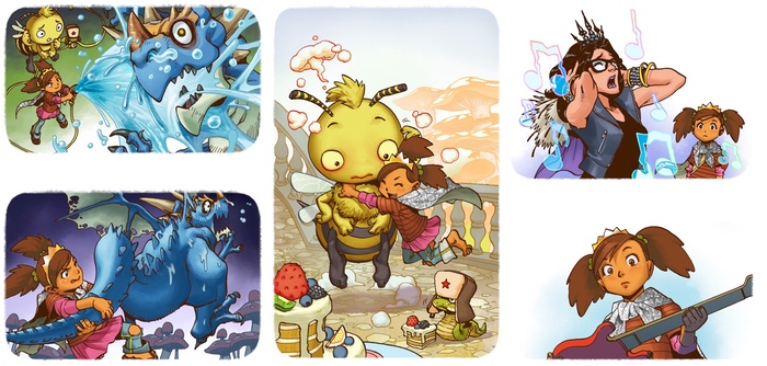 Jonathan: I stay out of the conversations Greg has with the rest of the folks, only because I don’t really feel qualified to comment on that stuff. I have absolutely zero visual creative bones. I can barely draw a square, so seeing the stuff that Tak and Jessica and Simon do is like watching a magic trick. But Greg and I talk a lot about the general plan up front, and I contributed a couple of ideas along the way (the farting bee was my idea – you’re welcome everybody). That said, I think we both felt like the messages were in there from the start, this idea of a princess character who was totally self-actualized and self-reliant, and moreover, solved problems through compassion and positivity.