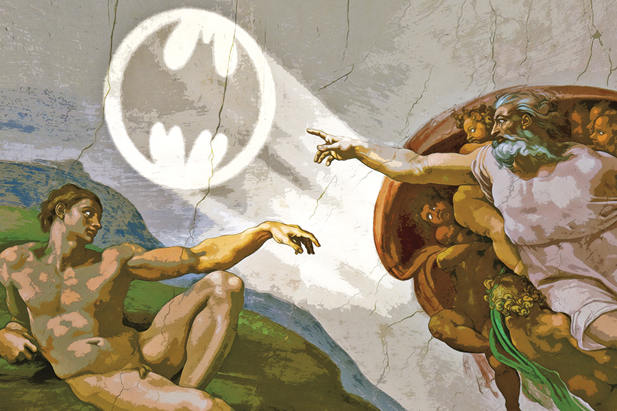 Where did the idea to take famous paintings like Van Gogh’s Starry Night, and Da Vinci’s Mona Lisa and rework them into contemporary Batman-inspired pieces come from?